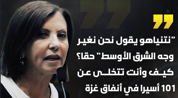 كما انتقدت عضو الكنيست عن ميرتس زهافا غاليون الخطاب الطموح لرئيس وزراء الكيان الصهيوني عند إعلان الموافقة على خطة وقف إطلاق النار وقالت: "نتنياهو يقول إننا نغير وجه الشرق الأوسط". حقًا فكيف تطلقون سراح 101 أسير في أنفاق غزة؟