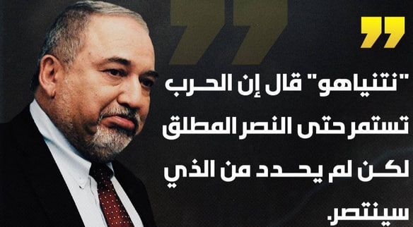كما كتب وزير الدفاع السابق للكيان الصهيوني أفيغدور ليبرمان ساخرا في رسالة على تويتر: "نتنياهو قال إن الحرب ستستمر حتى النصر الكامل، لكنه لم يحدد من سينتصر؟" وأضاف: "هذا الاتفاق يعني الاستسلام للإرهاب".