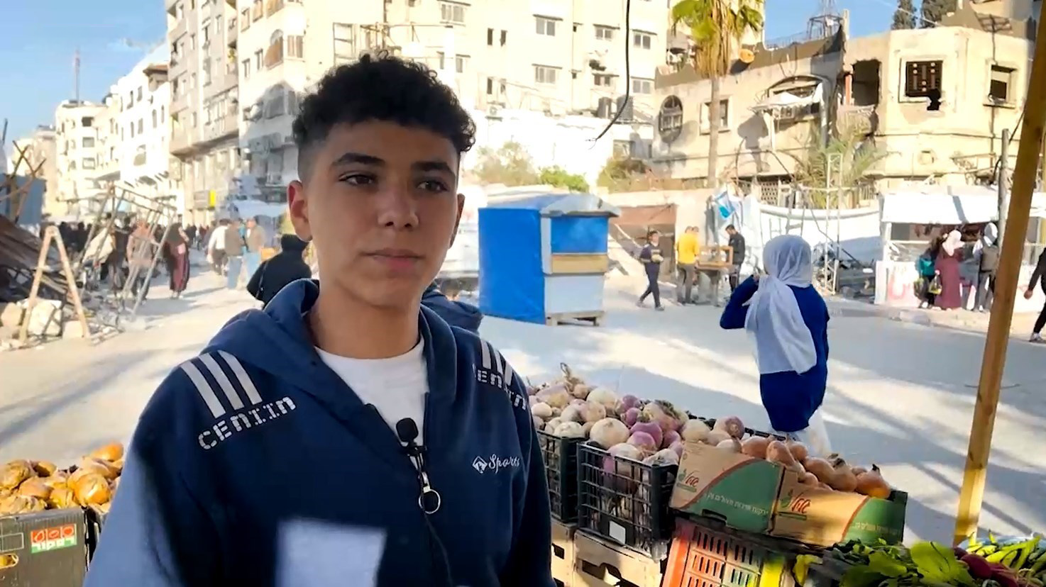 "سمير الحفني"؛ يشعر بائع فلسطيني شاب في سوق غزة بالغضب لأنه لم يتمكن من شراء الفواكه والخضروات لمتجره، ويعتقد أن غزة دخلت مرحلة جديدة من المجاعة.