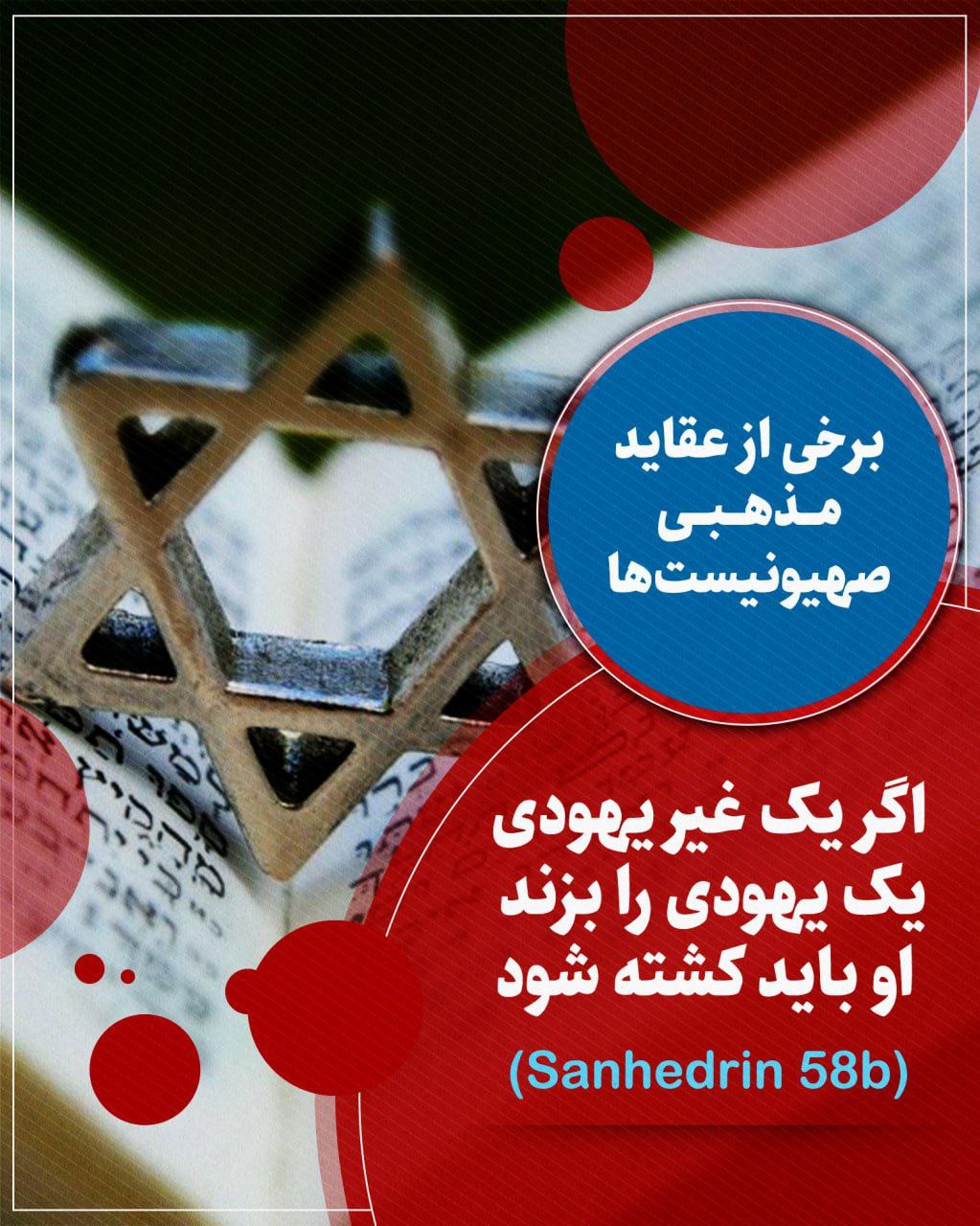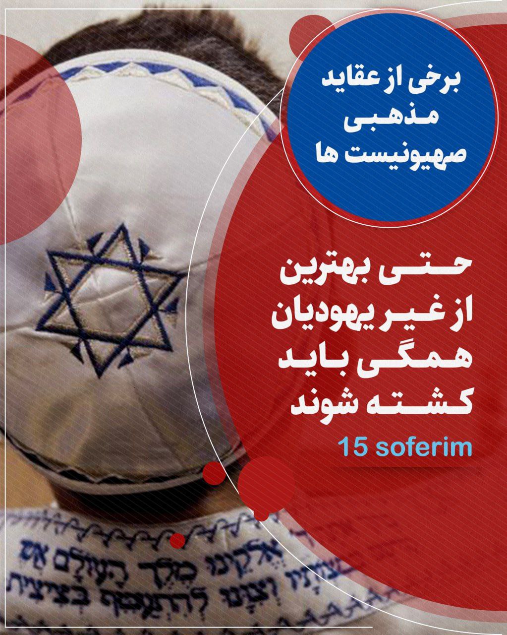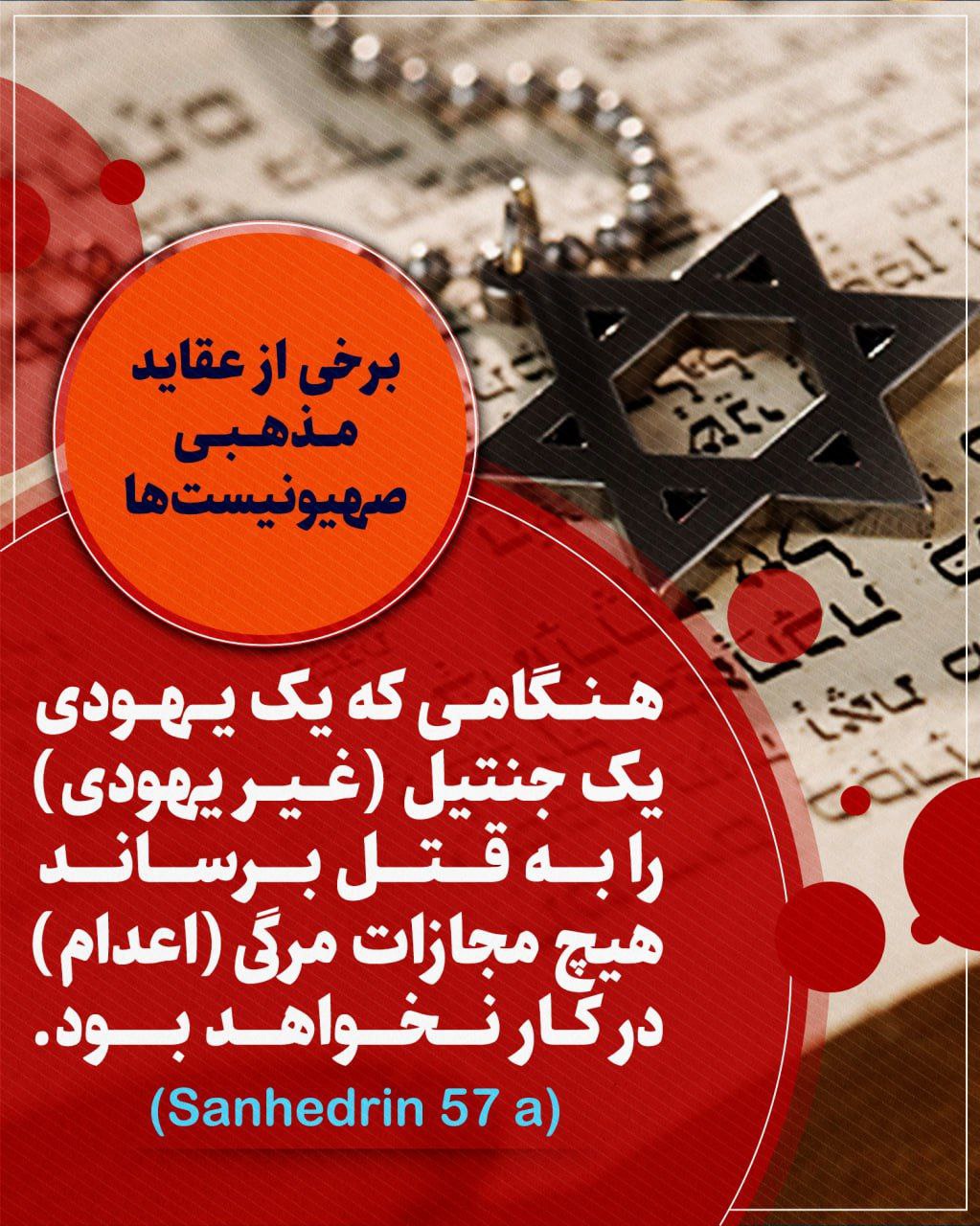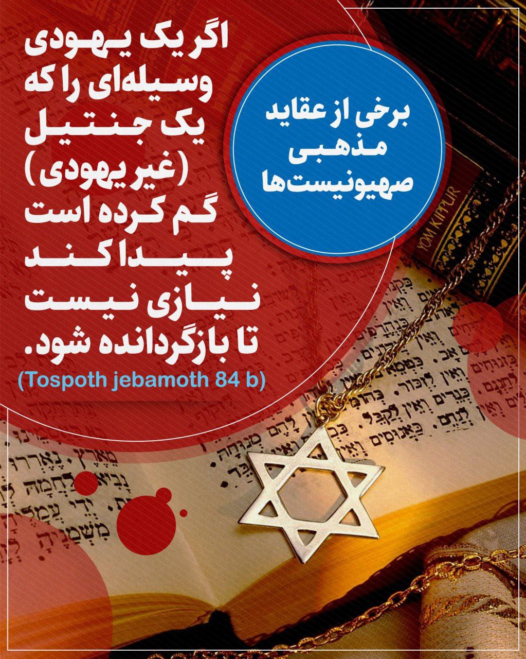 5- بر صهیونیستها، كشتن و غصب كردن و دزدی نمودن مال غیر اسرائیلی جایز، بلكه واجب است.