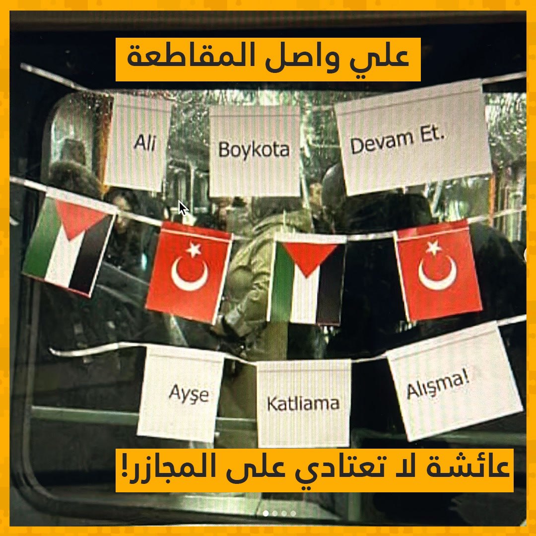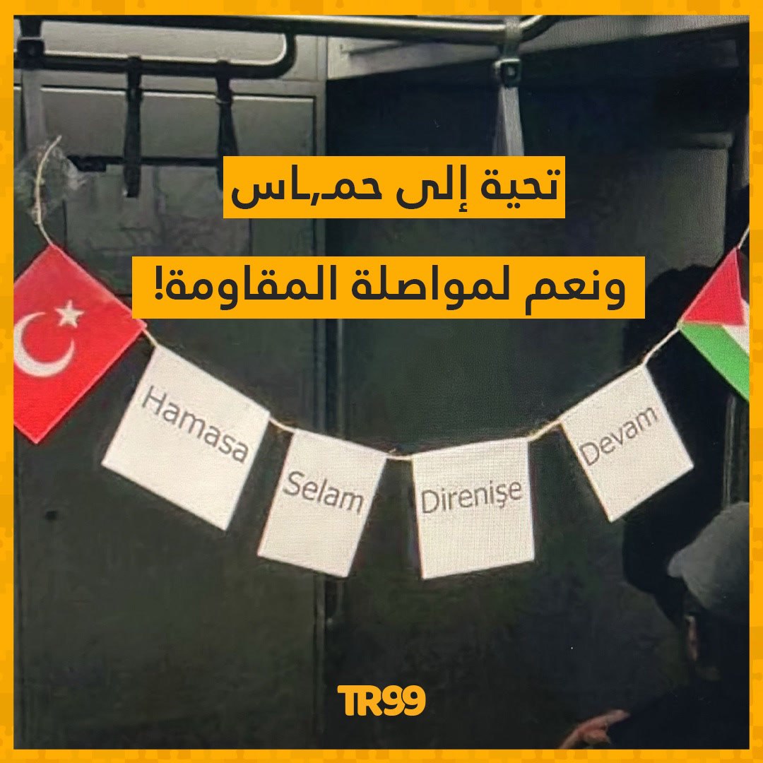 روی این پوسترها عباراتی در حمایت از مقاومت فلسطین و حماس و رد اظهارات شهردار استانبول درج شده است.