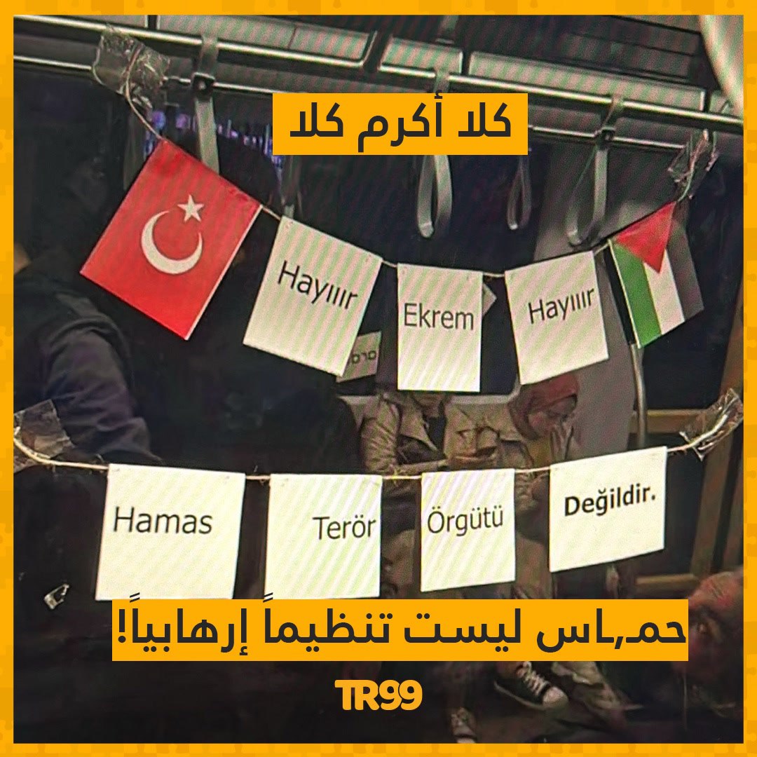 شماری از فعالان مدنی و مردم ترکیه اعتراض خود به اظهارات شهردار استانبول علیه مقاومت حماس را در متروی این شهر با انتشار پوستر و پرچم به نمایش گذاشتند.