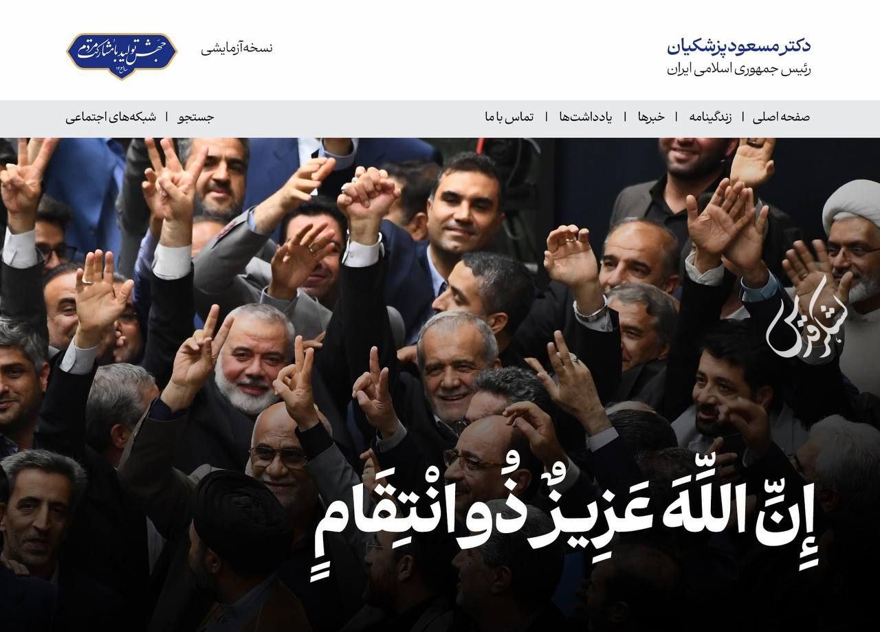 رئیس‌جمهوری اسلامی ایران در فضای مجازی با اشاره به شهادت اسماعیل هنیه، نوشت: پیوند دو ملت سربلند ایران و فلسطین مستحکم‌تر از قبل خواهد شد و مسیر مقاومت و دفاع از مظلوم پرقدرت‌تر از همیشه دنبال می‌شود.