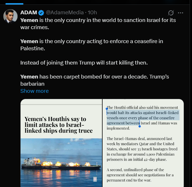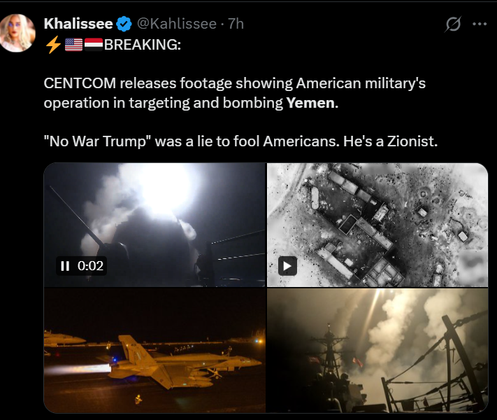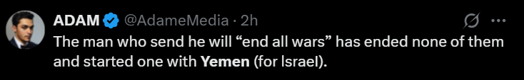 کاربری در این زمینه نوشته که ادعای ترامپ برای پایان دادن به جنگها یک دروغ برای گولزدن مردم آمریکا بوده. این کاربر تأکید کرده که ترامپ صهیونیست است.