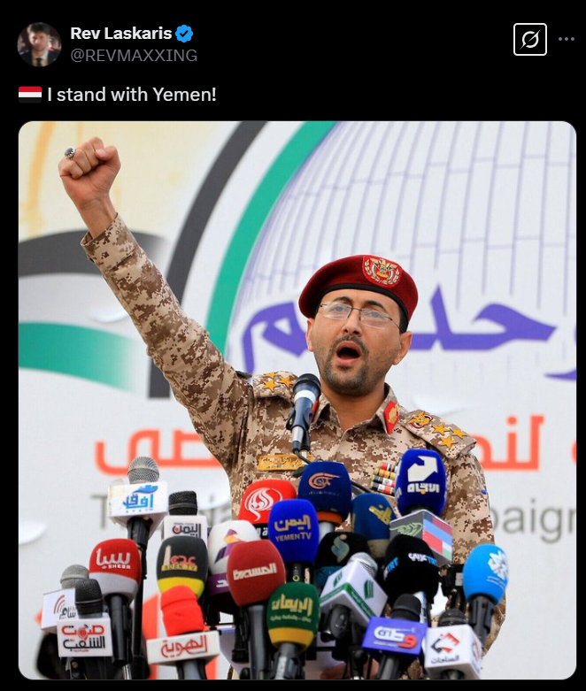 «ما همه یمنی هستیم» این جمله نیز از جمله جملات پرتکرار کاربران غربی بود. این کاربران یمن را بهخاطر حمایت از فلسطین و ایستادگی در مقابل اسرائیل ستایش کرده و تأکید کردهاند که آنها نیز در کنار یمن ایستادهاند.