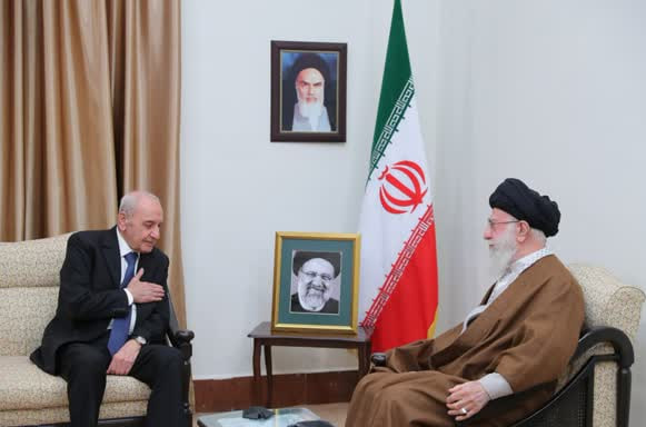 رئيس مجلس النواب اللبناني "نبيه بري" والوفد المرافق له، في لقاء مع قائد الثورة الإسلامية مساء اليوم، باسم حكومة وشعب هذا البلد، قدموا تعازيهم لآية الله خامنئي والشعب الإيراني في وفاة الرئيس ووزير الخارجية ومرافقيه.