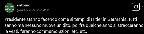 واختتم هذا المسؤول الإيطالي السابق كلمته بالدعوة إلى التدخل العملي لإيطاليا لإنهاء جرائم النظام الصهيوني، وكتب: إن مجرد الحديث لا قيمة له: هذه صفحات من التاريخ مليئة بالدماء والعار وتتطلب خيارات قوية. أين ميلوني وفون دير لاين؟