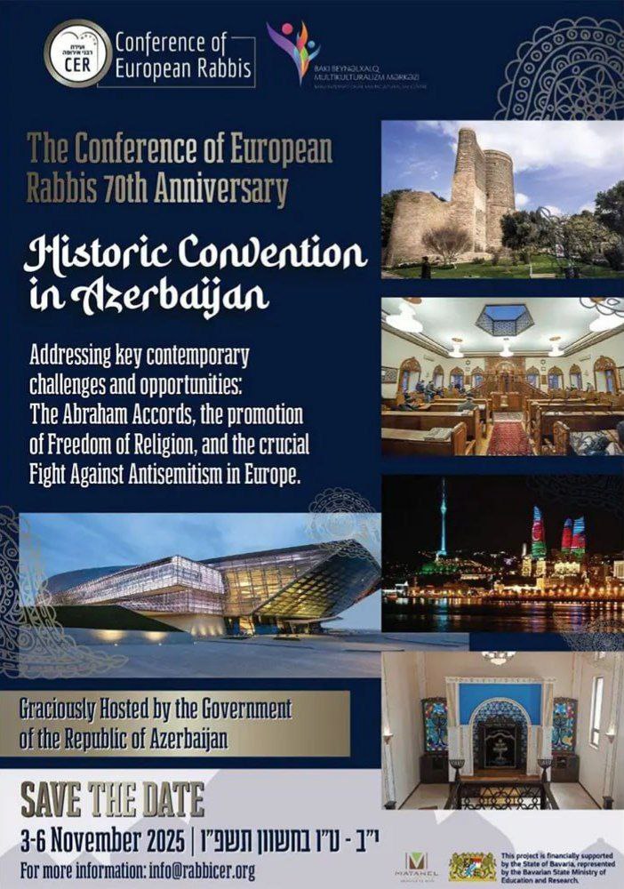 يحتفل المؤتمر الحاخامي الأوروبي (ARK) بالذكرى السبعين لتأسيسه باجتماع تاريخي في أذربيجان، في الفترة من 3 إلى 6 نوفمبر 2025، وفقًا لوكالة "شباب برس". وسيُعقد هذا الحدث بمبادرة من الحكومة الأذربيجانية وبالتعاون مع مركز باكو الدولي متعدد الثقافات.