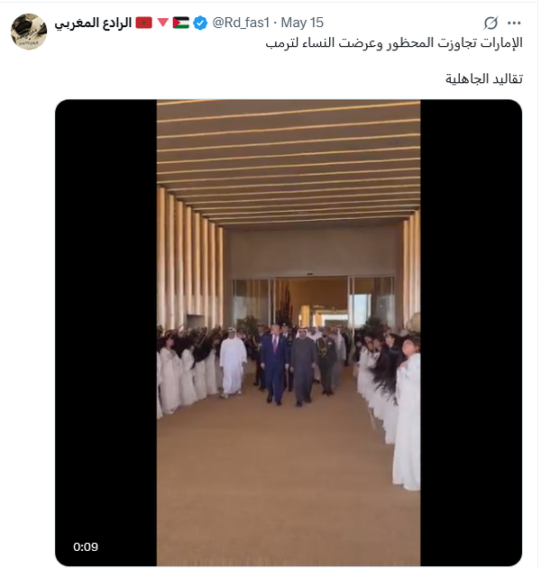 امارات متحده عربی از خط قرمزها عبور کرد و زنان را در معرض دید ترامپ قرار داد، (این)سنتهای پیش از اسلام است.