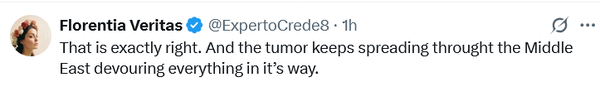 کاملاً درست است. و این تومور همچنان در خاورمیانه گسترش مییابد و هر چیزی را که سر راهش باشد میبلعد.