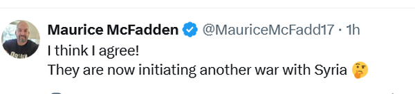 فکر میکنم موافقم! آنها (رژیم صهیونیستی ) اکنون در حال آغاز جنگ دیگری با سوریه هستند.