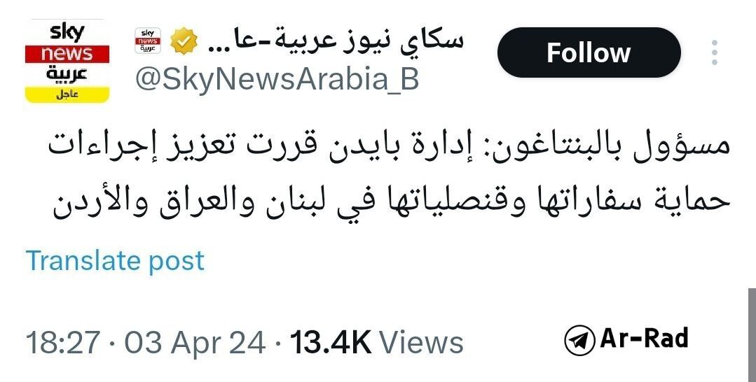 به گزارش شباب پرس، اسکای نیوز به نقل از سخنگوی پنتاگون اعلام کرد که دولت بایدن تصمیم گرفته است تدابیر امنیتی در سفارتخانه ها و کنسولگری های آمریکا در لبنان، عراق و اردن را تقویت کند.